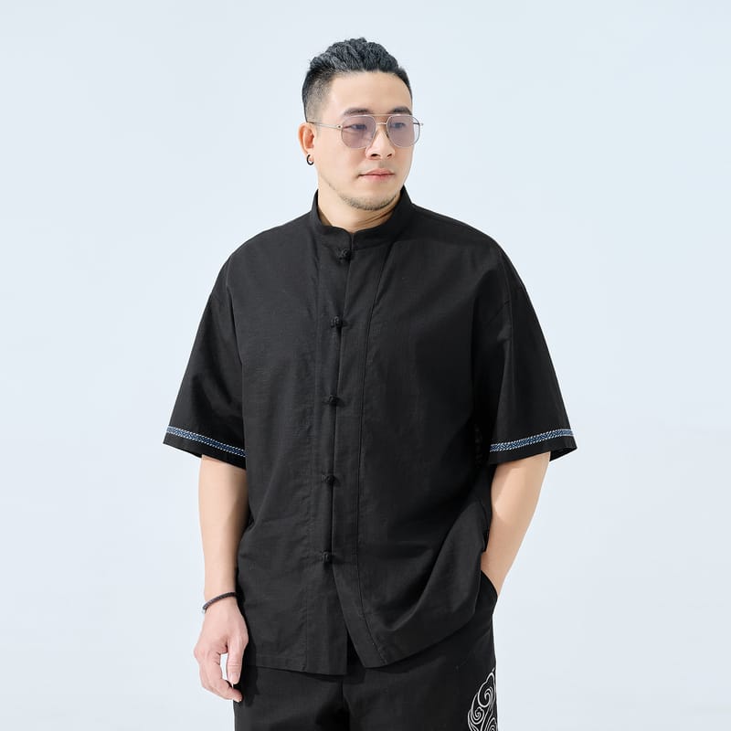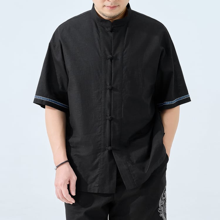 大きいサイズ、がっちり体型向けの中国風半袖シャツ