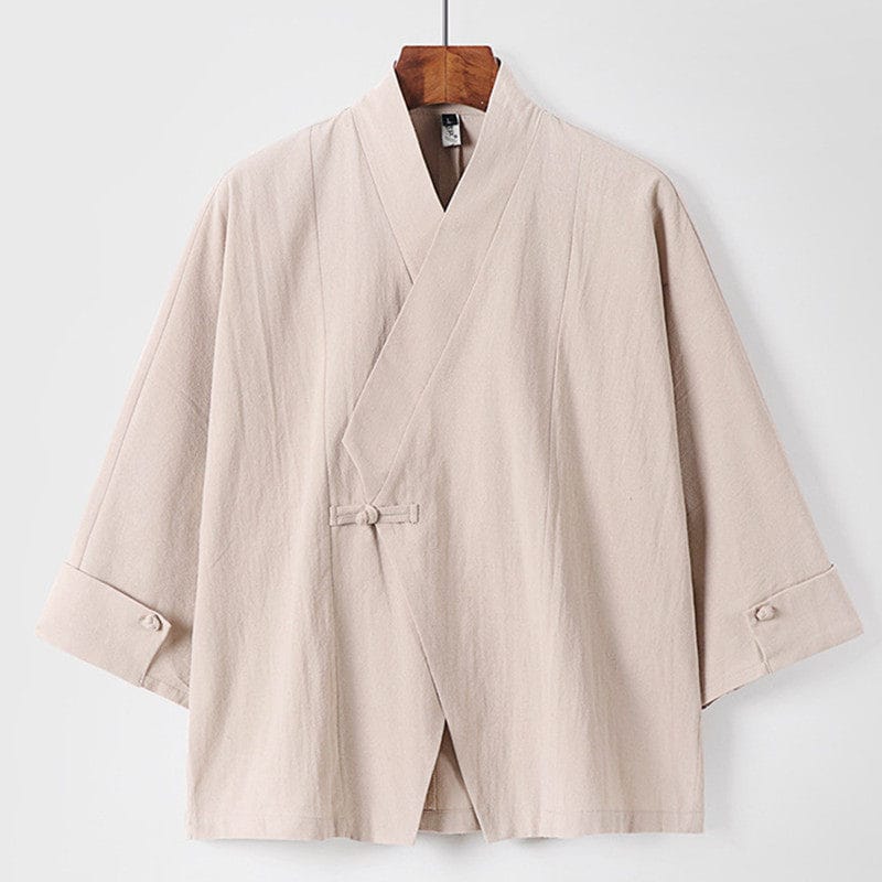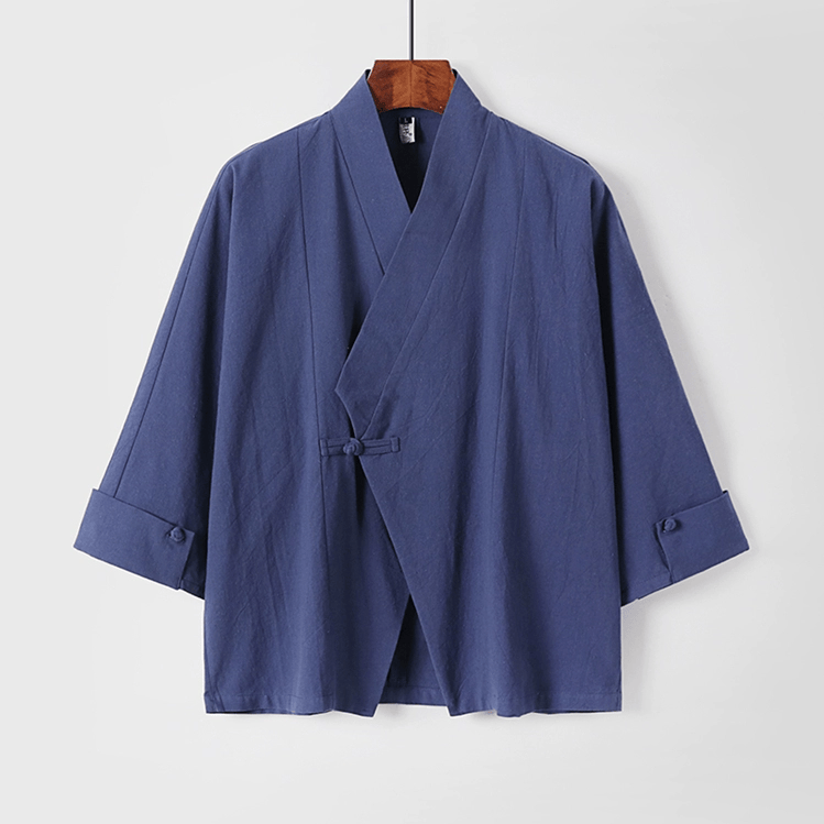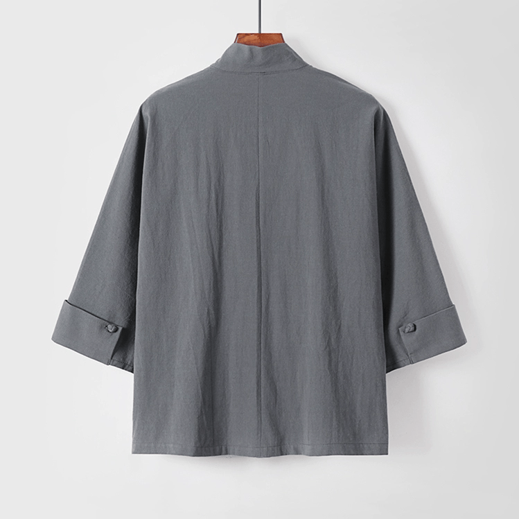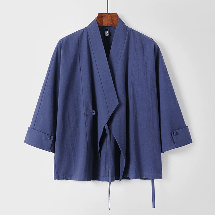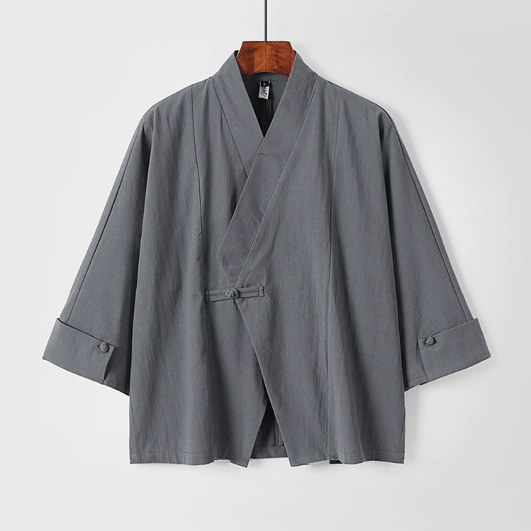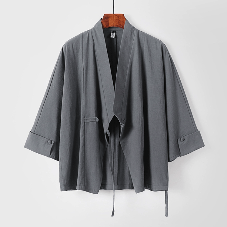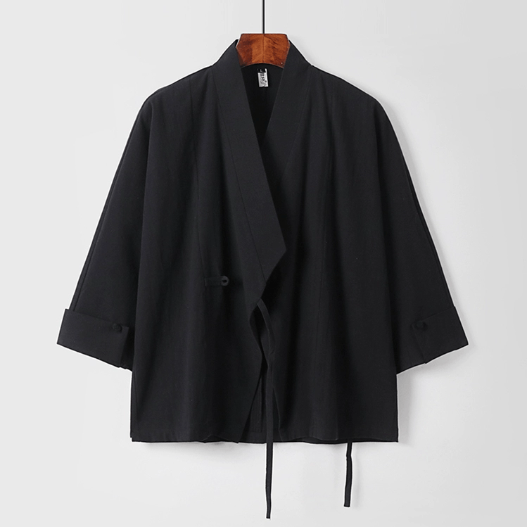 がっちり体型、肥満体型向けの中国風オープン羽織ジャケットです。