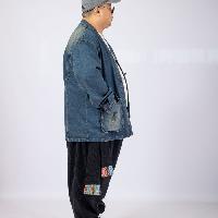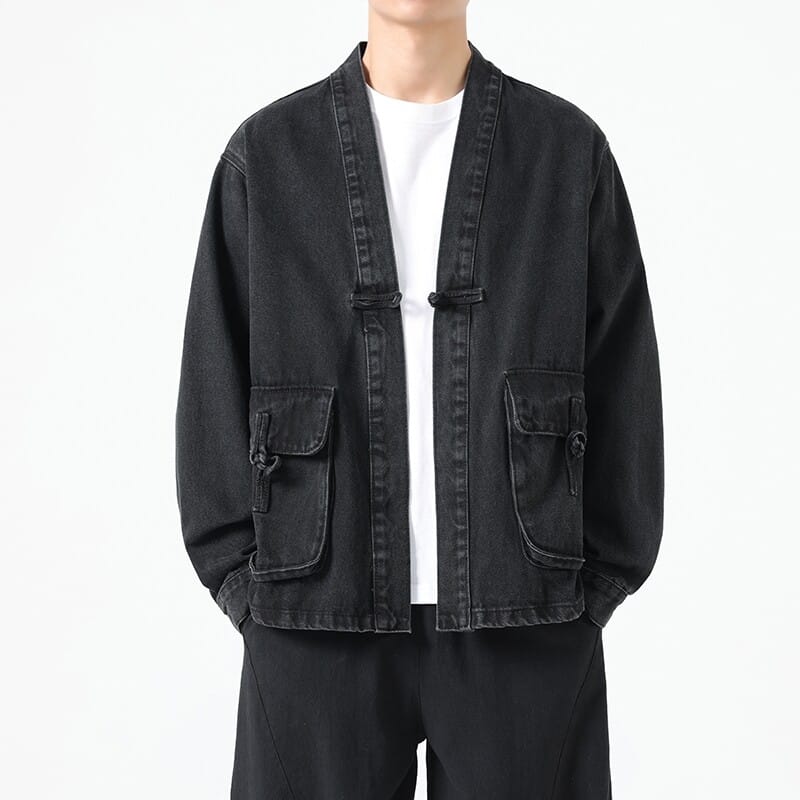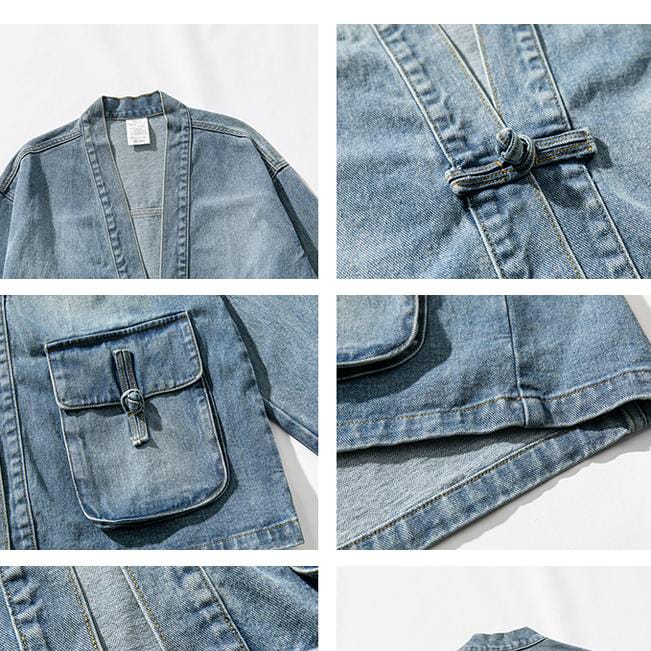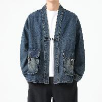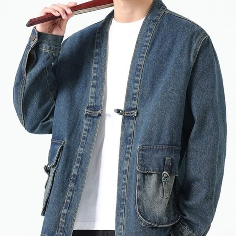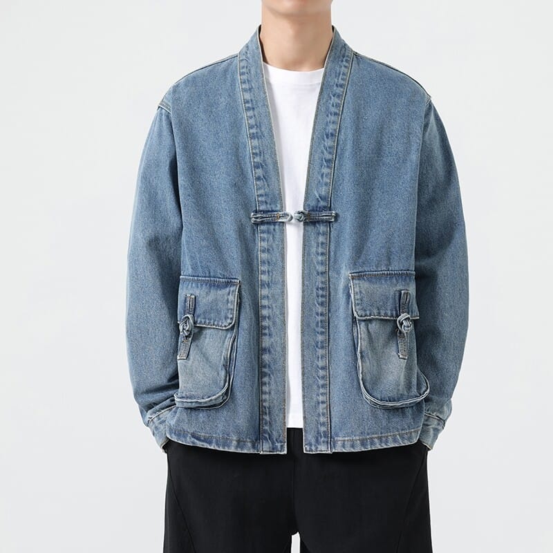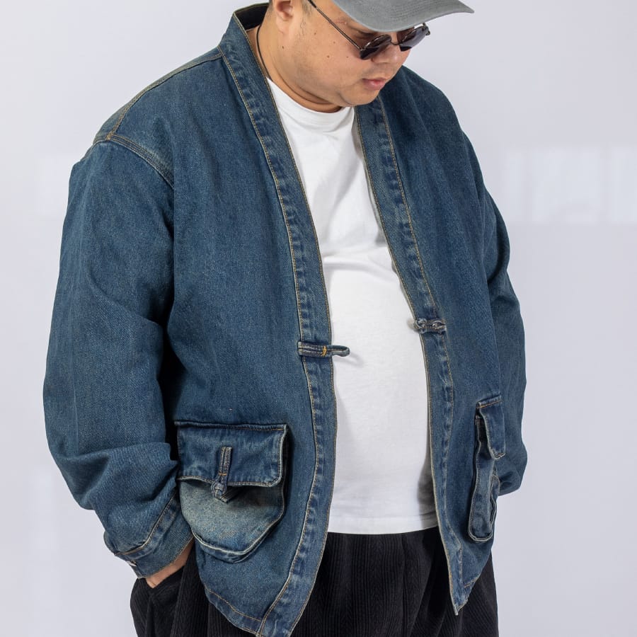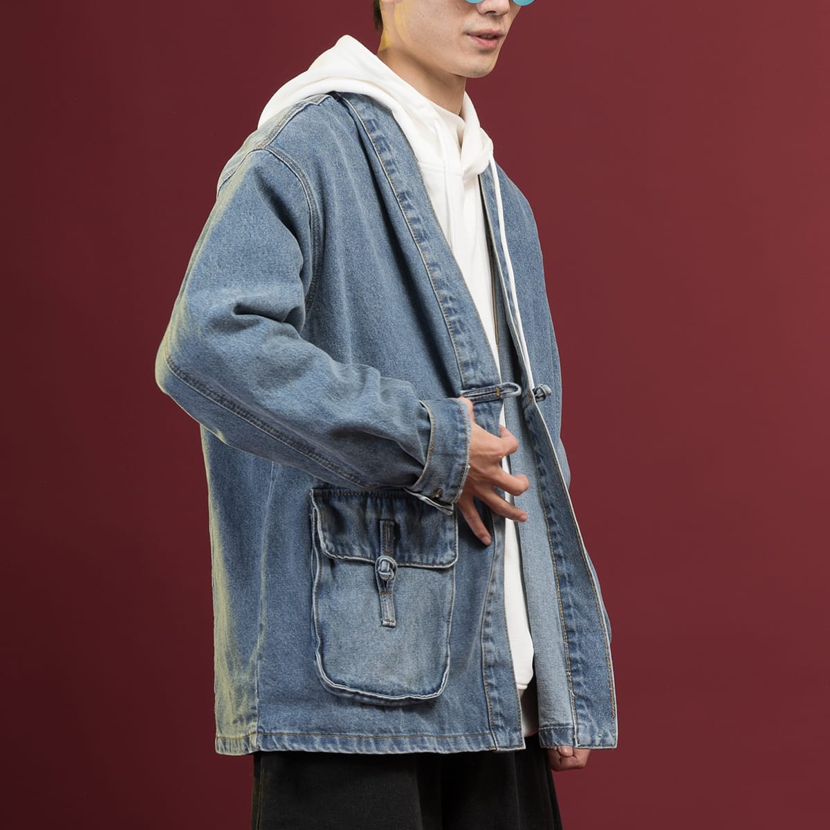 中国風のデザインを取り入れたユニークなデニムカーディガンです。