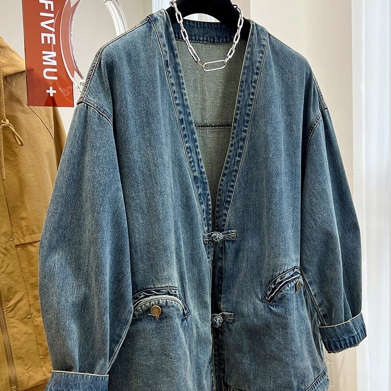 カーディガン仕様の中国風デニムジャケットです。