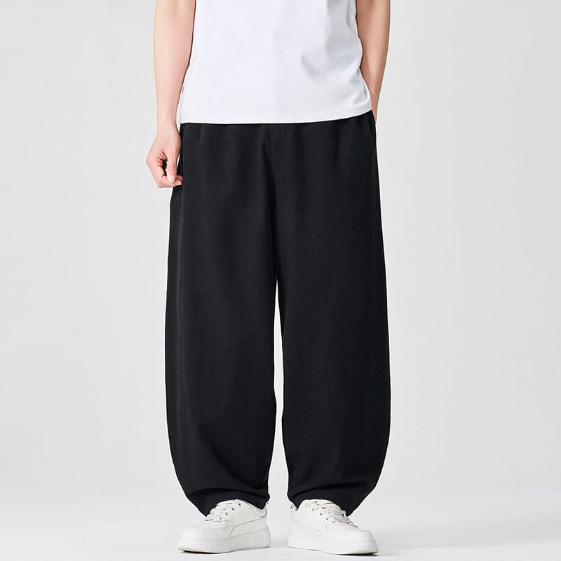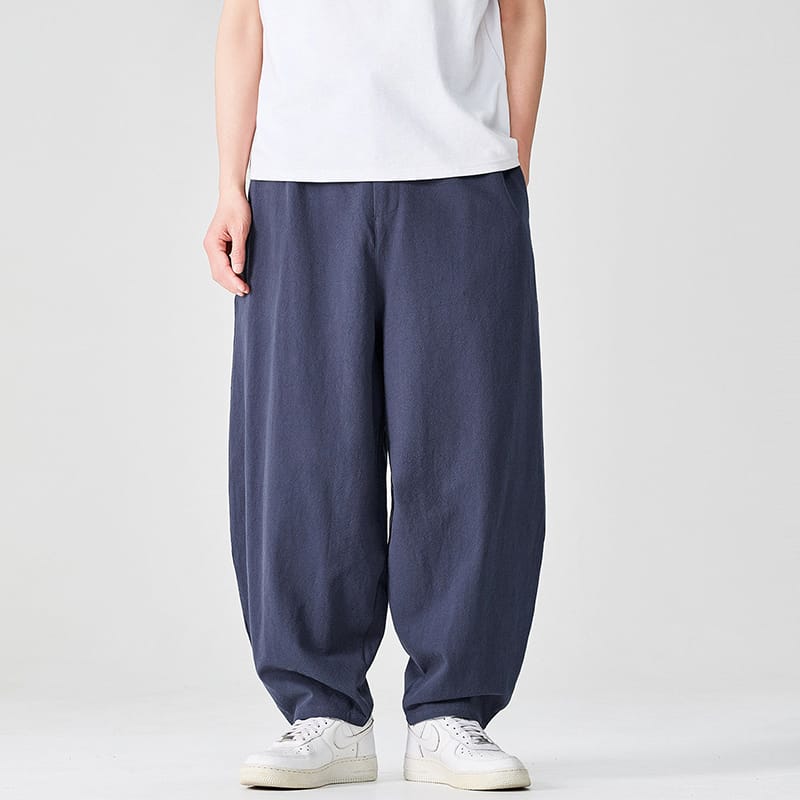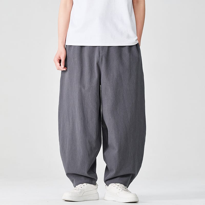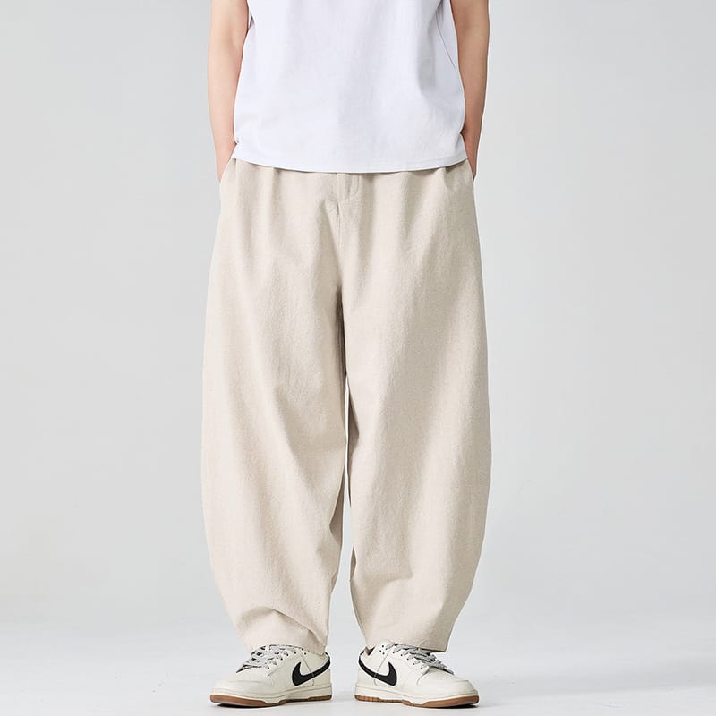 シンプルな無地デザインの中国風コットンリネン素材ワイドパンツです。