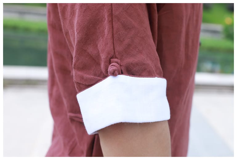 折り返し袖口をロールアップで留めるお洒落なデザイン。