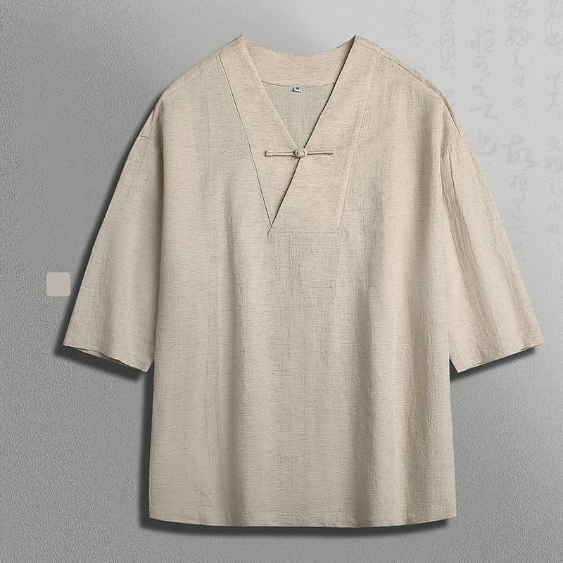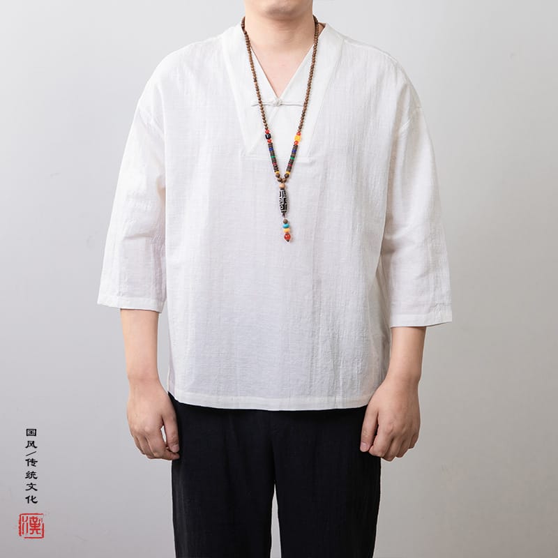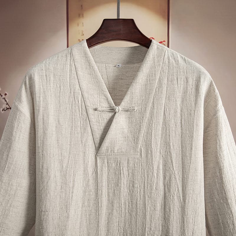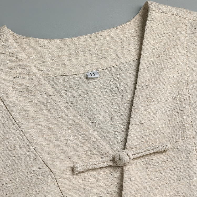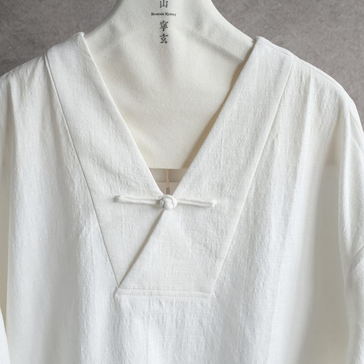 Vネックとそれを留める伝統的な結び紐が特徴!