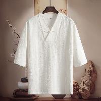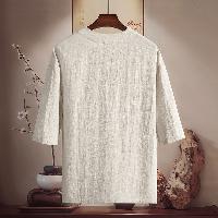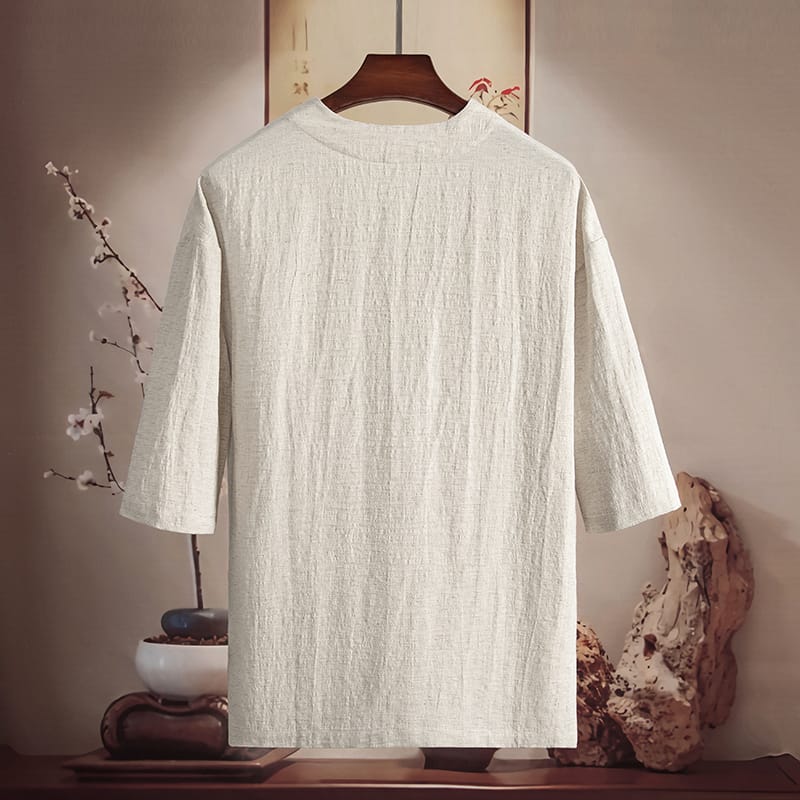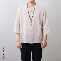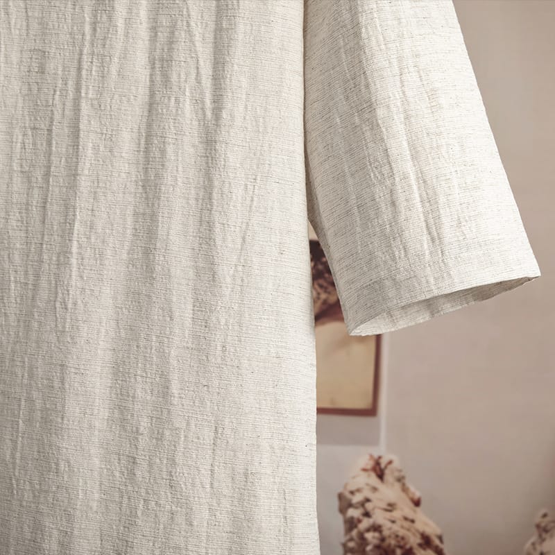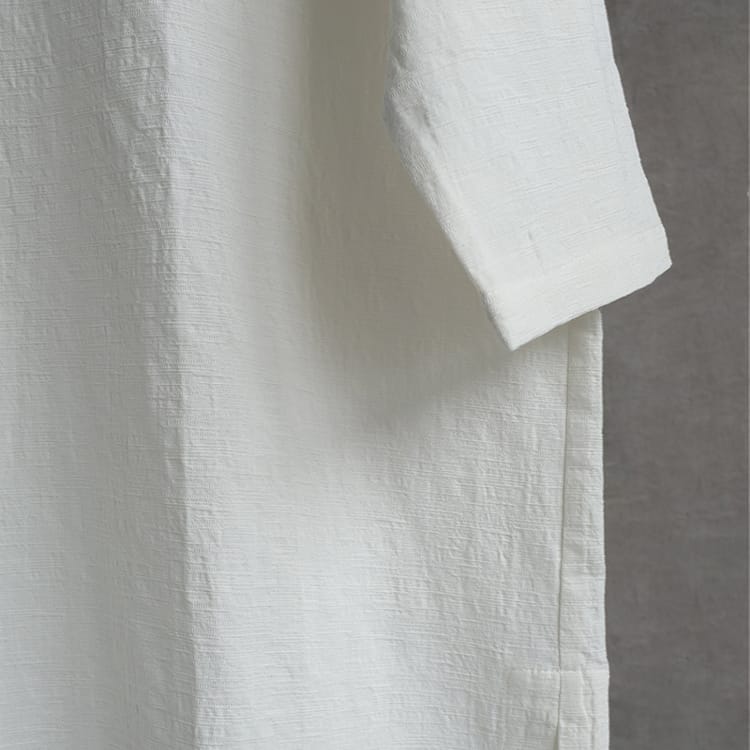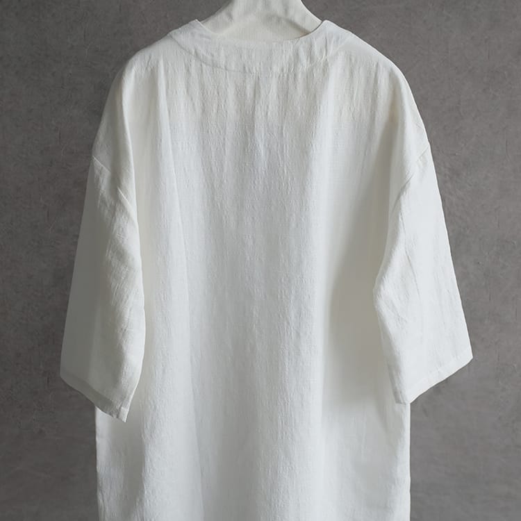 ゆったりとした5分袖丈の綿麻素材Tシャツです。