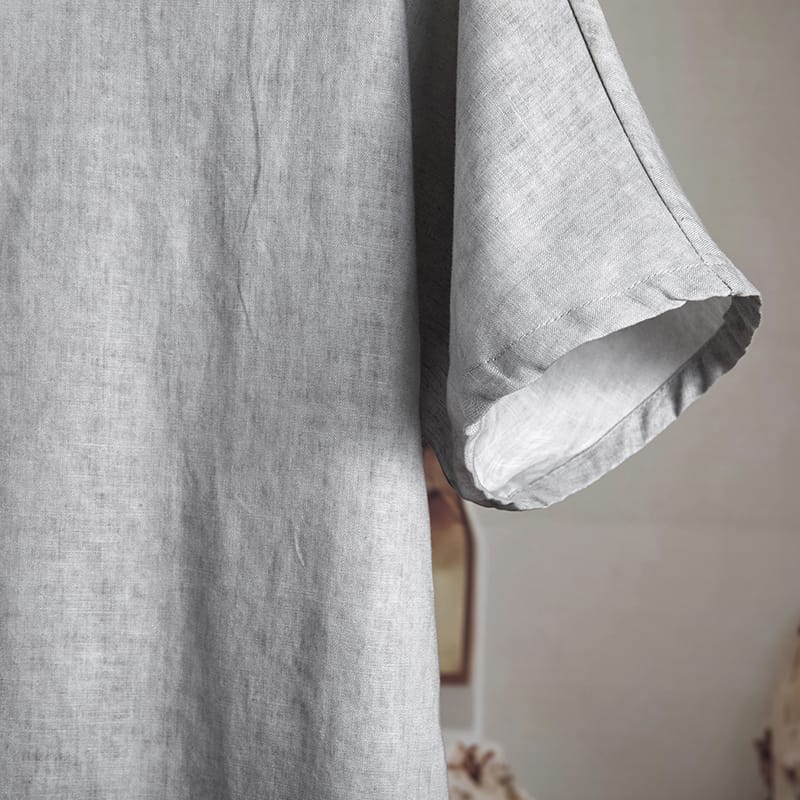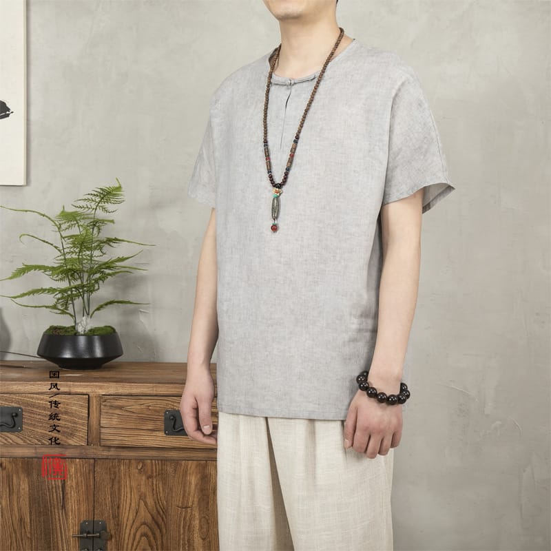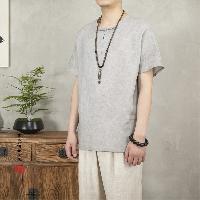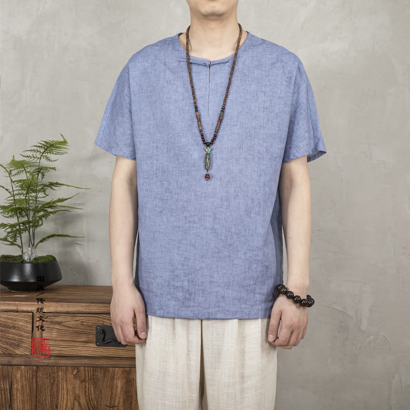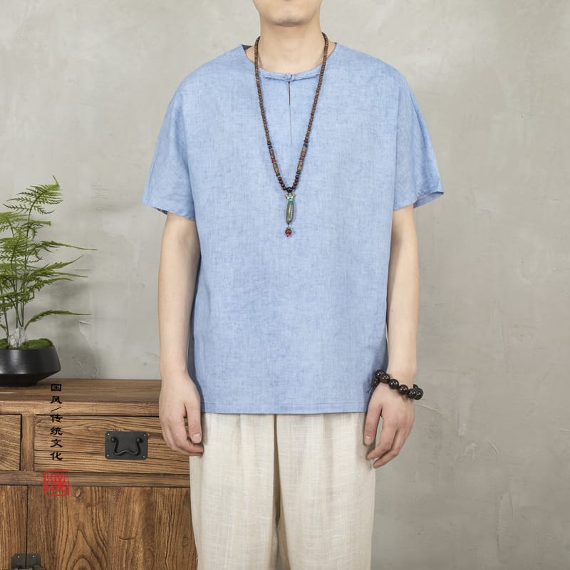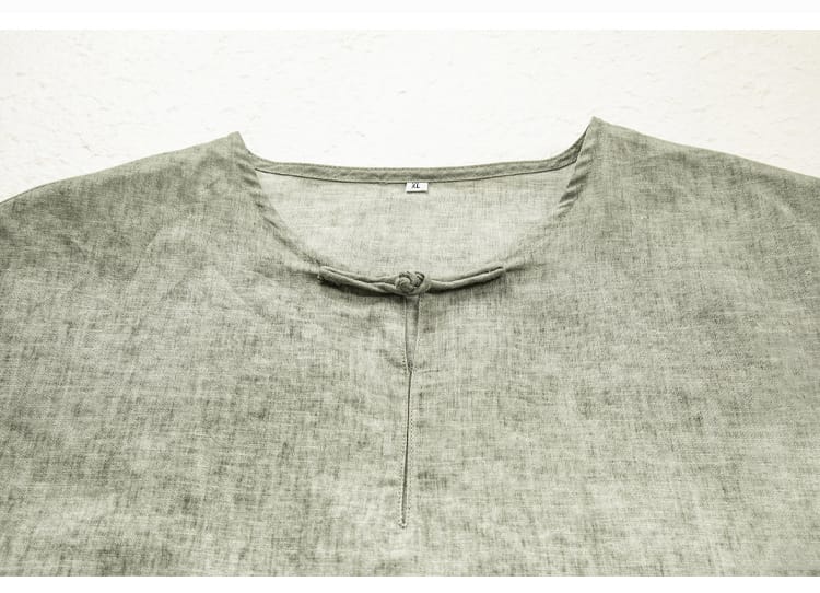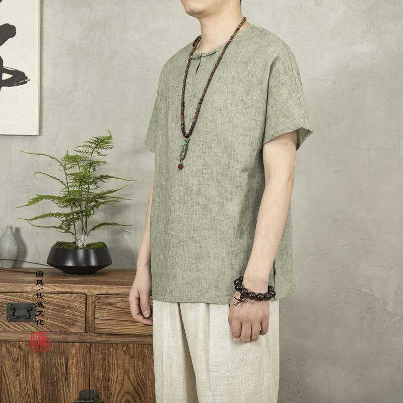 襟元のチャイナボタンがおしゃれなチャイナTシャツです。通気性の高い薄手綿麻素材なので、暑い真夏の着用を快適にします。