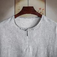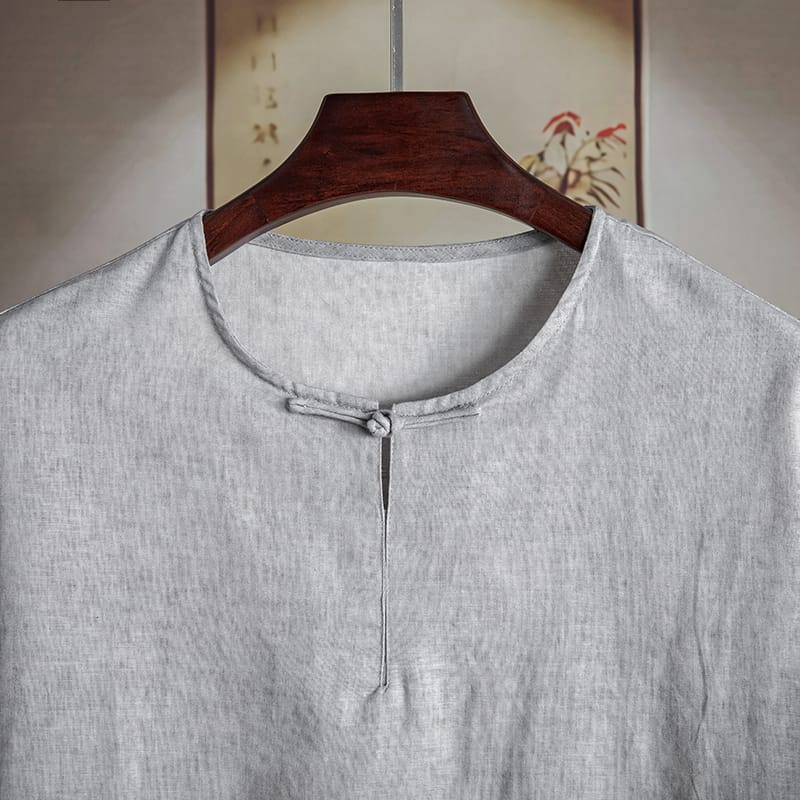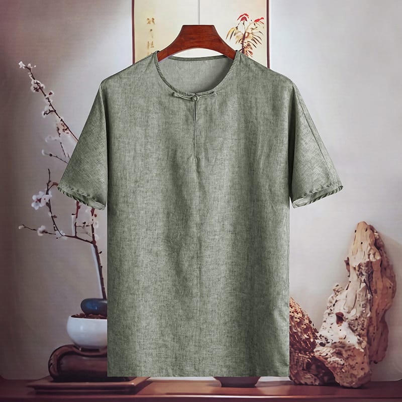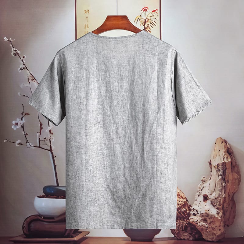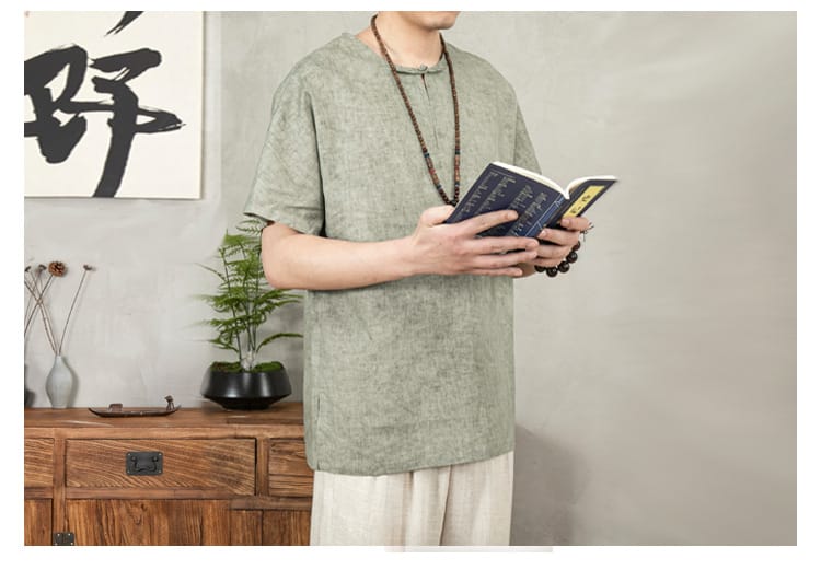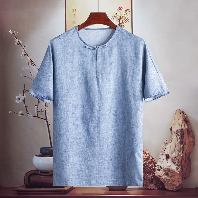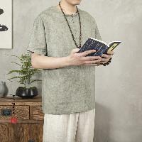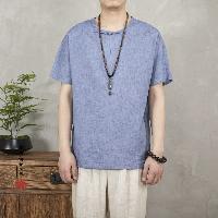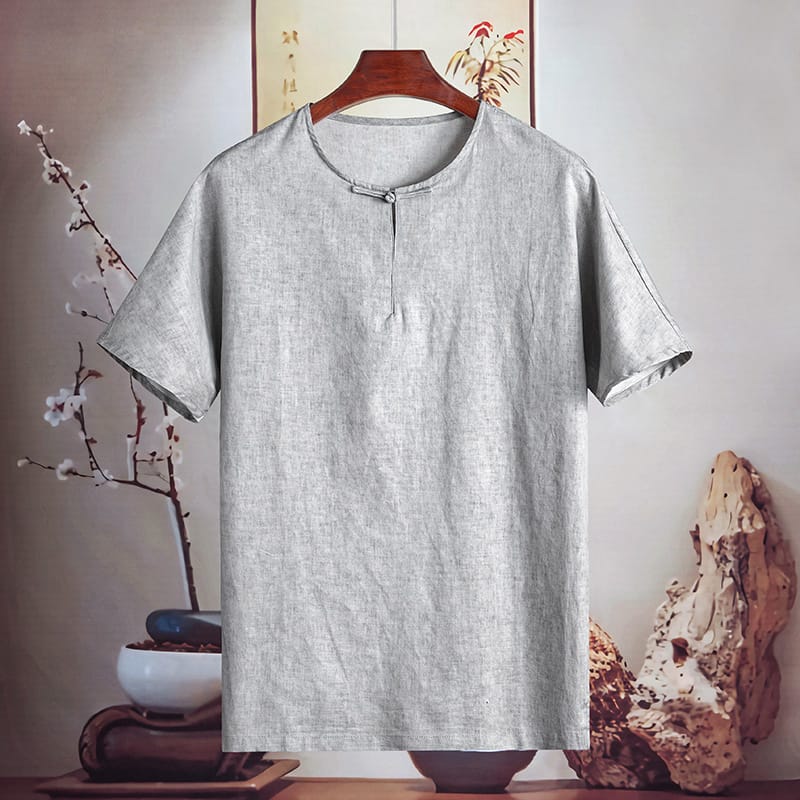 襟元のチャイナボタンがおしゃれなチャイナTシャツです。通気性の高い薄手綿麻素材なので、暑い真夏の着用を快適にします。