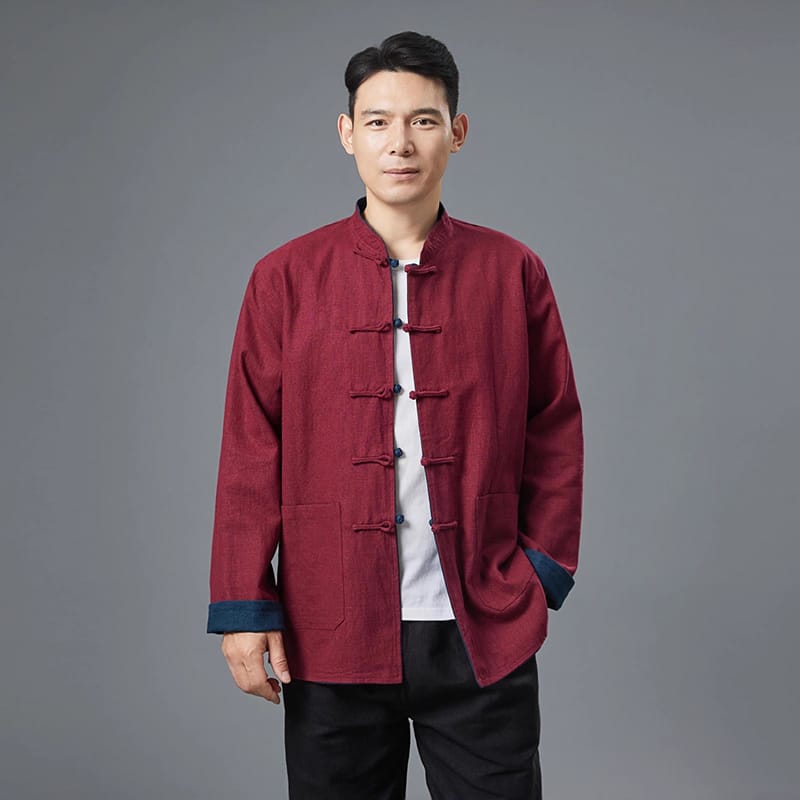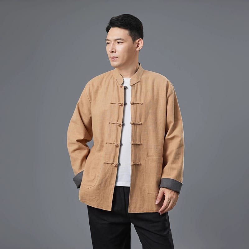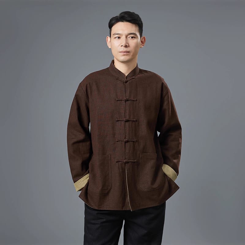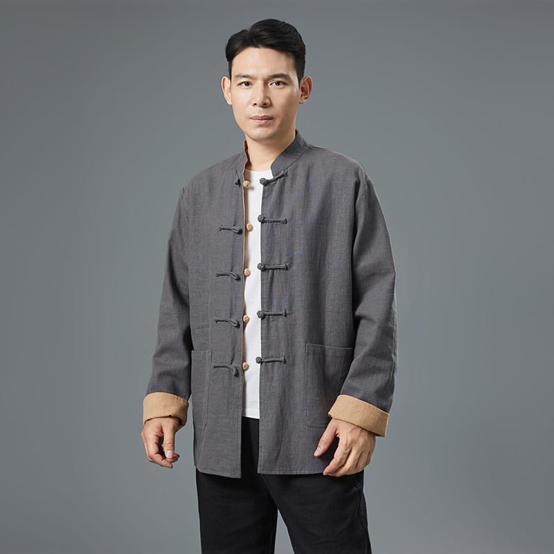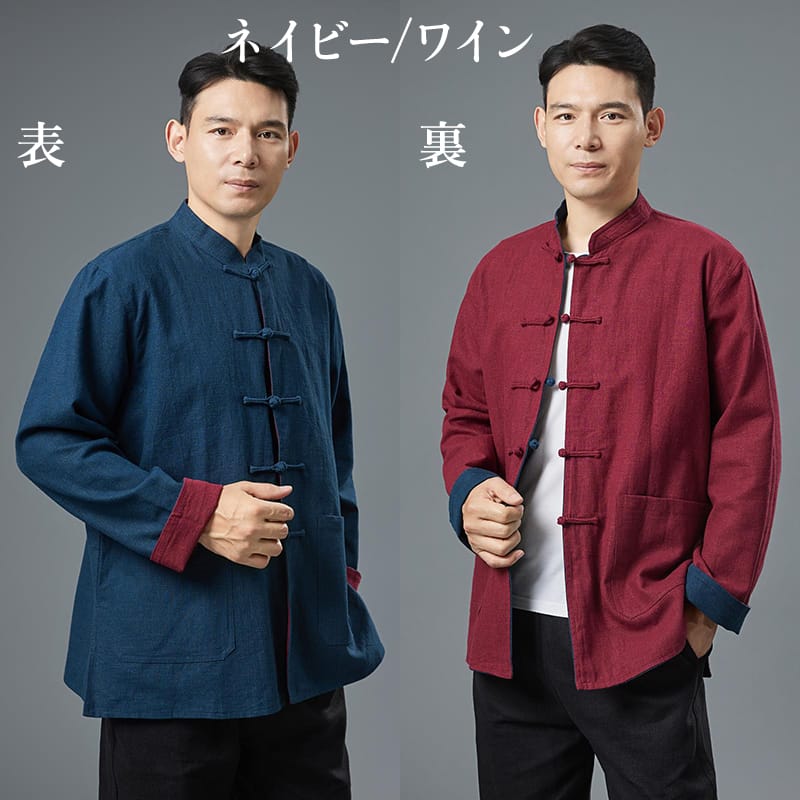 苧麻(ラミー)素材のリバーシブル中国風ジャケットです。