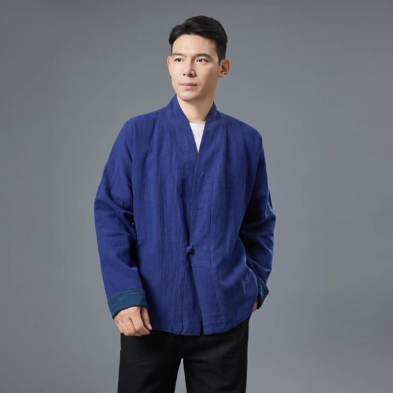 フロントを一つの玉ボタンで留めるレトロなチャイナスタイル