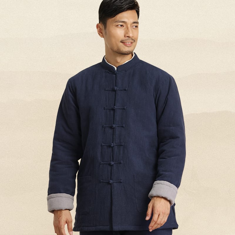 伝統的な中国風唐装の冬用メンズジャケットです。折り返しカフス袖口がアクセント!