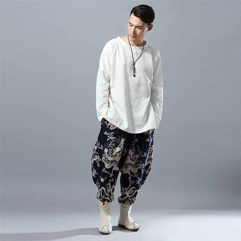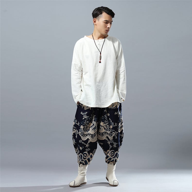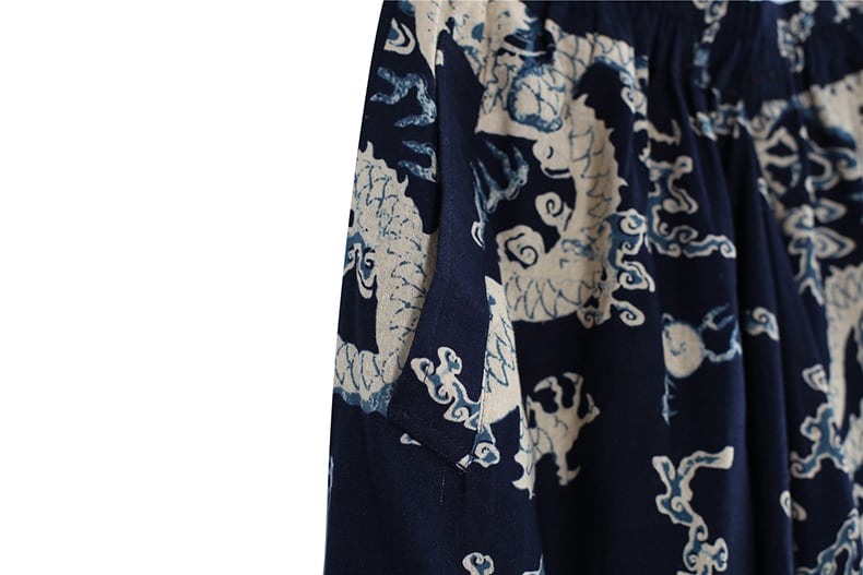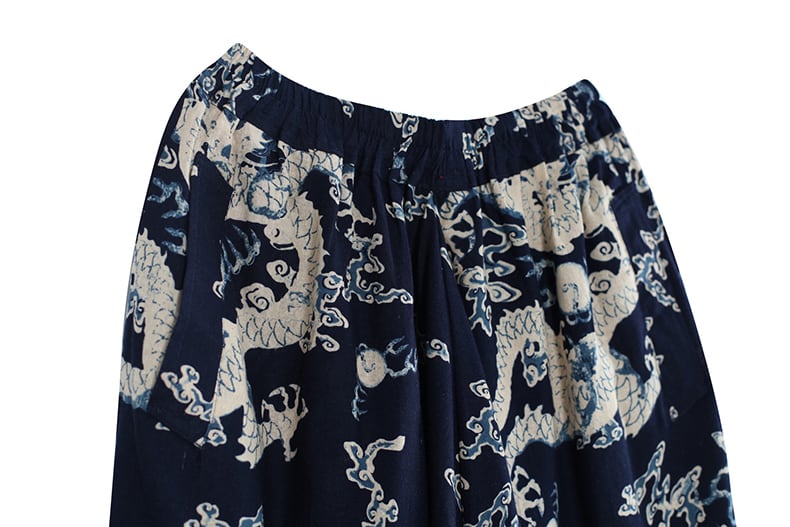 中国龍のプリントが施されたチャイナハーレムパンツです。