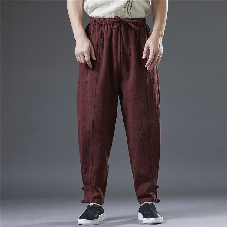 高品質な麻(ラミー)を使った中華風ハーレムパンツです。