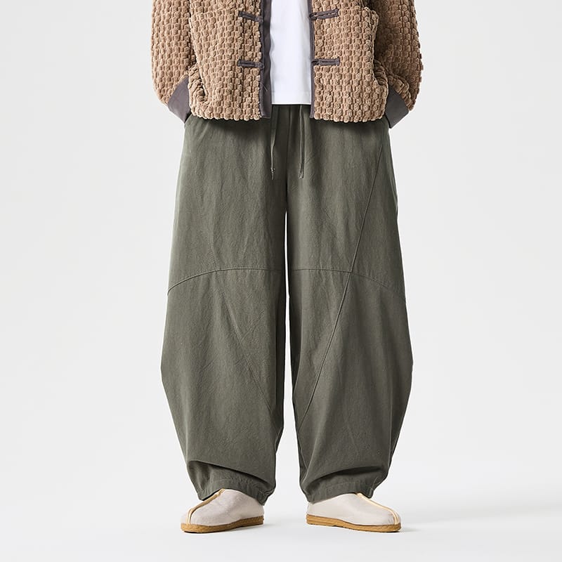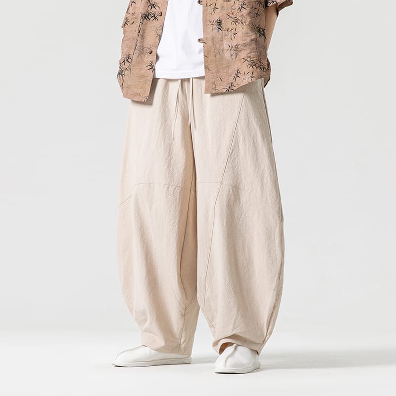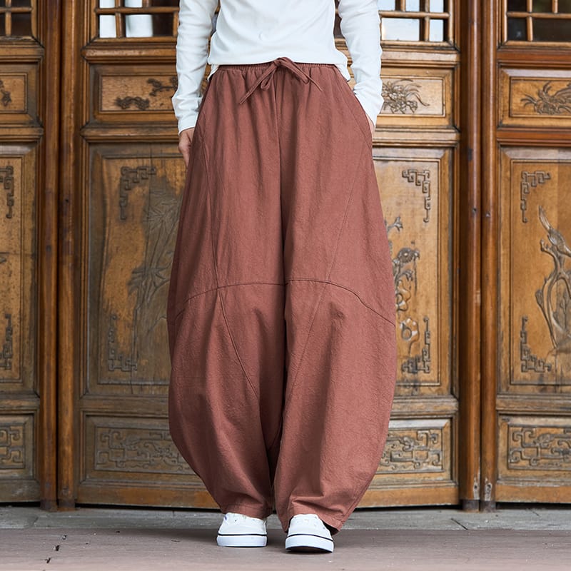 レトロな中華スタイルで、カジュアルな着こなしに最適な提灯パンツです。6色展開。