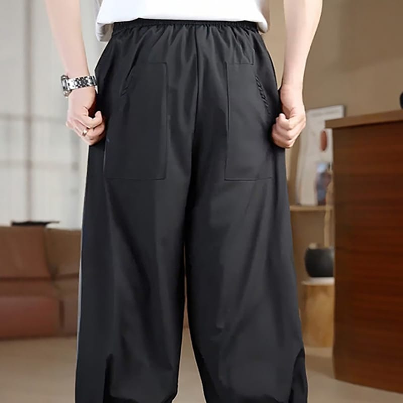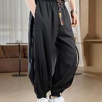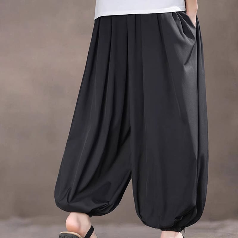 光光沢感ある冷感アイスシルク素材の黒色バルーンパンツです。