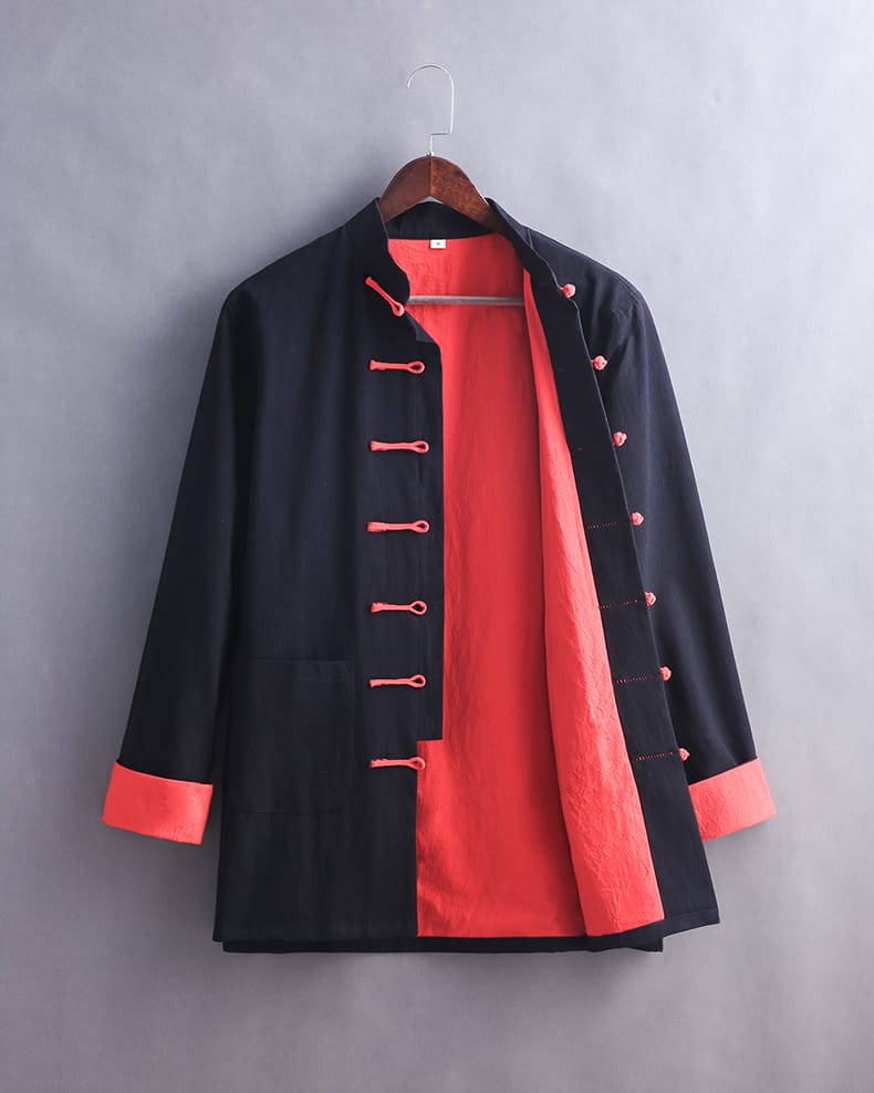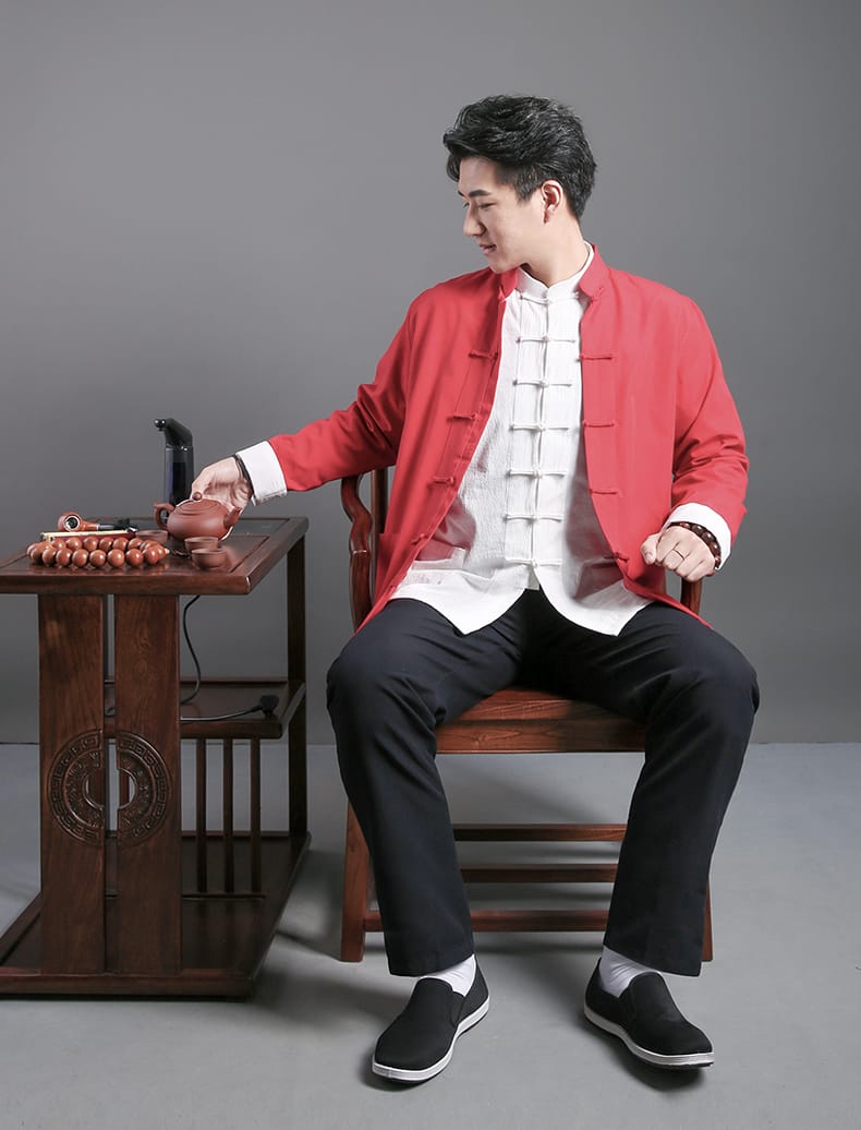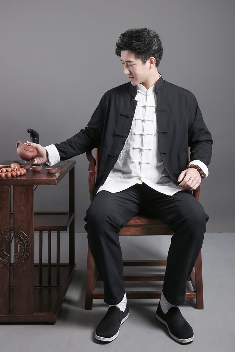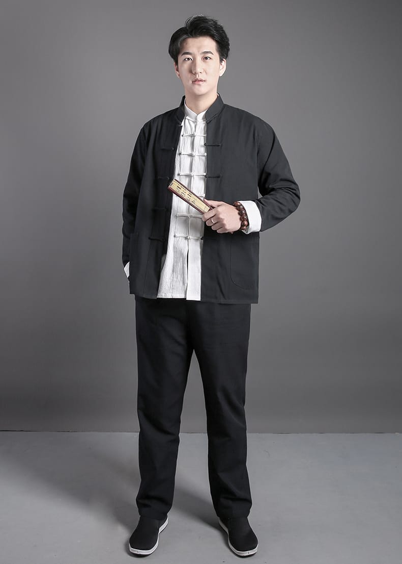 綿100%生地で作ったカンフージャケット、パンツとインナーシャツの3点セットです。