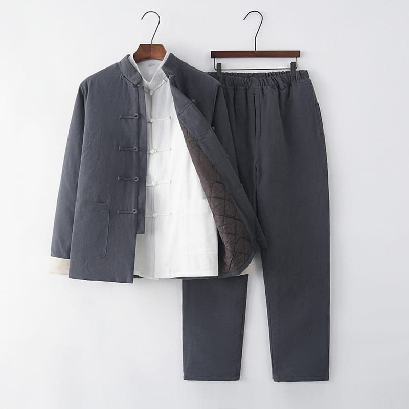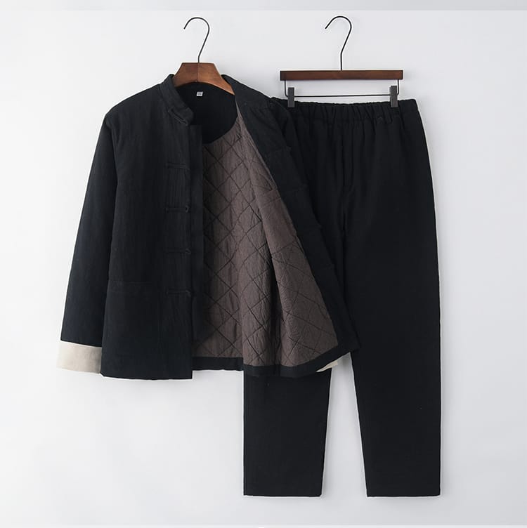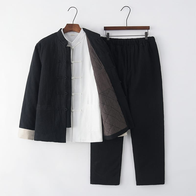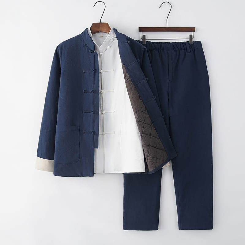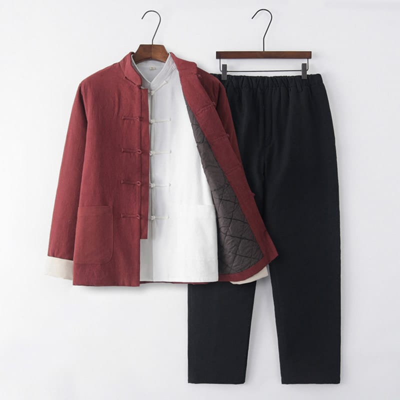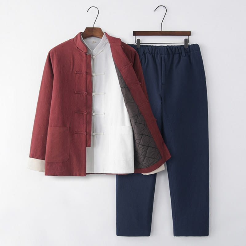 冬季向け中国風唐装3点セット(ジャケット・インナーシャツ・パンツ)です。
