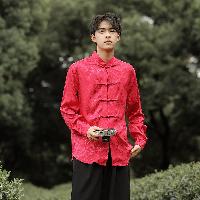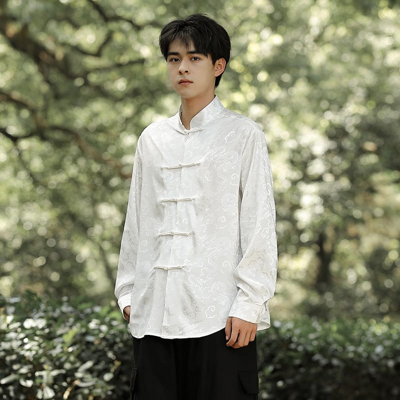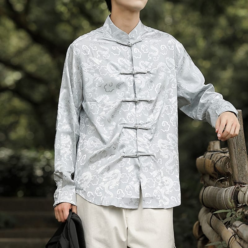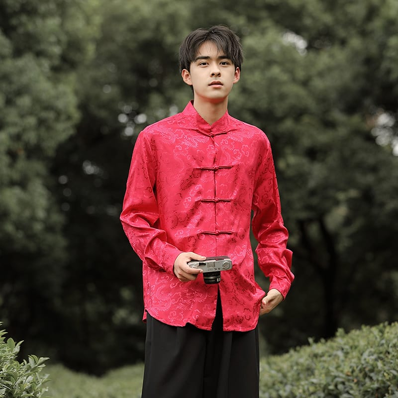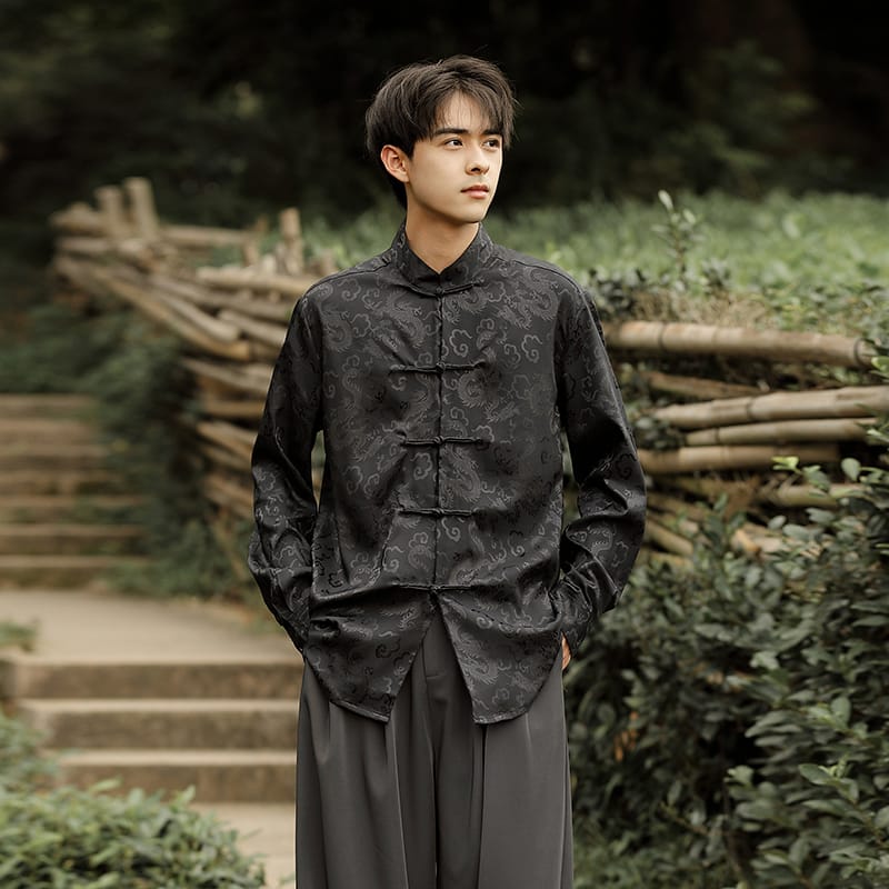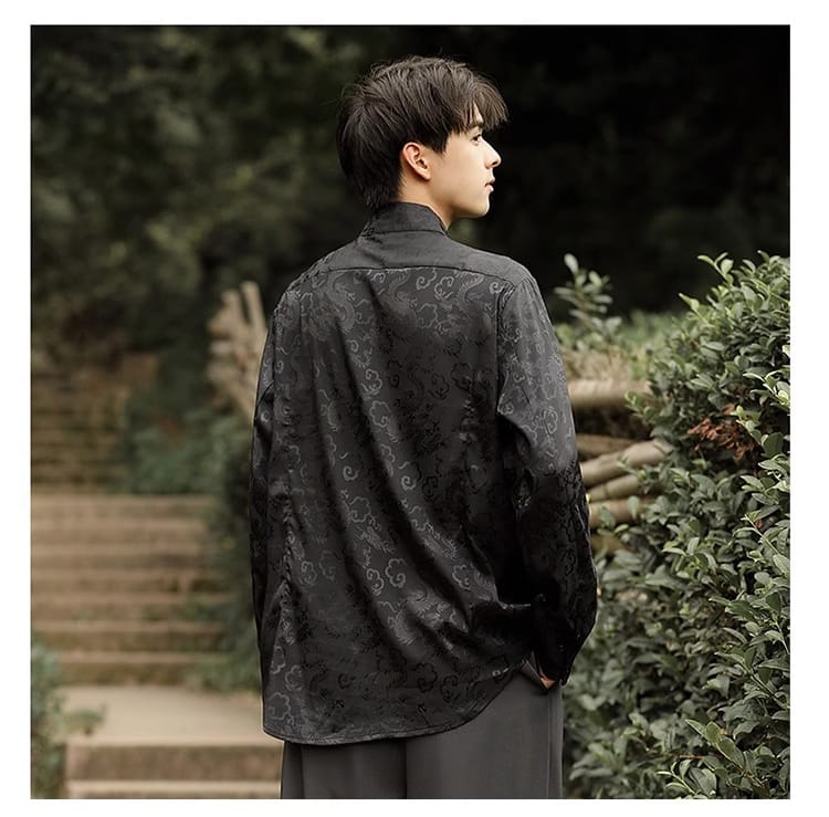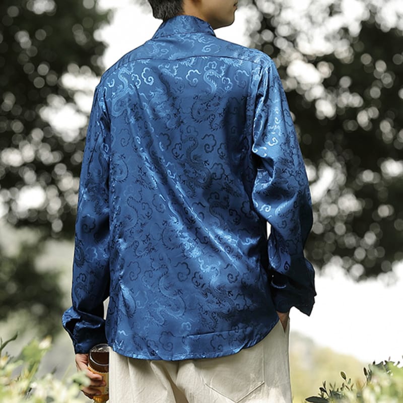 中国龍のジャガード模様が織り込まれたチャイナシャツです。