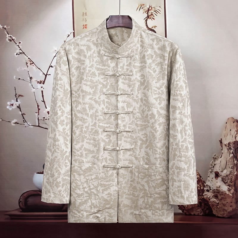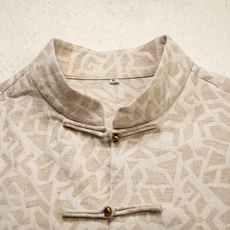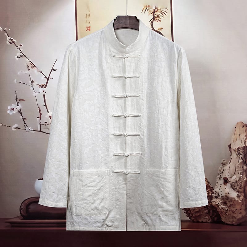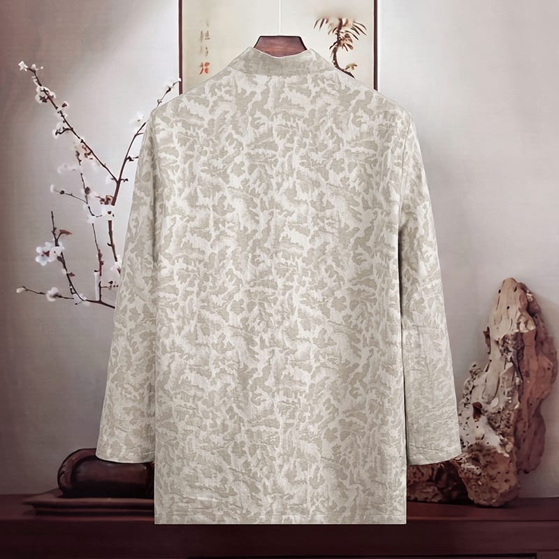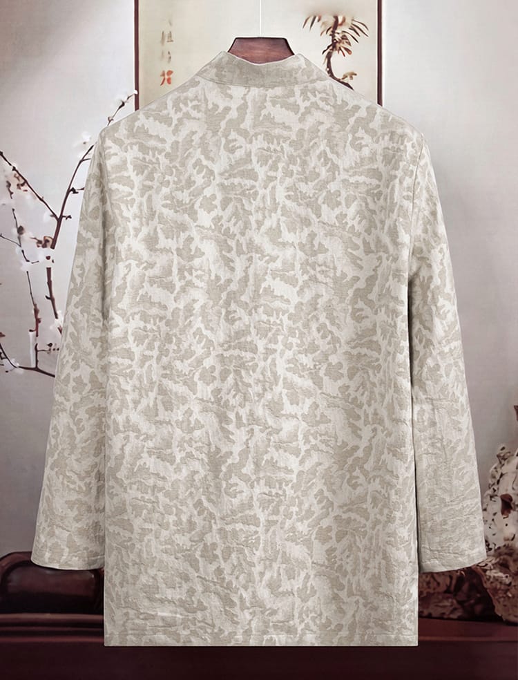 幾何学ジャガード模様の長袖チャイナシャツです。