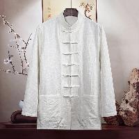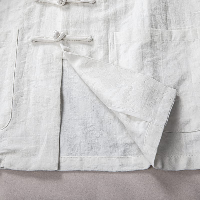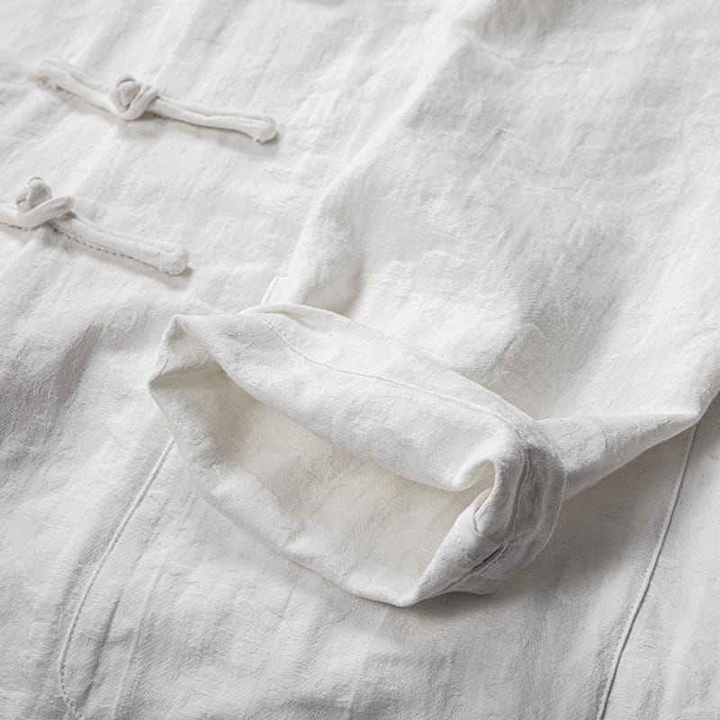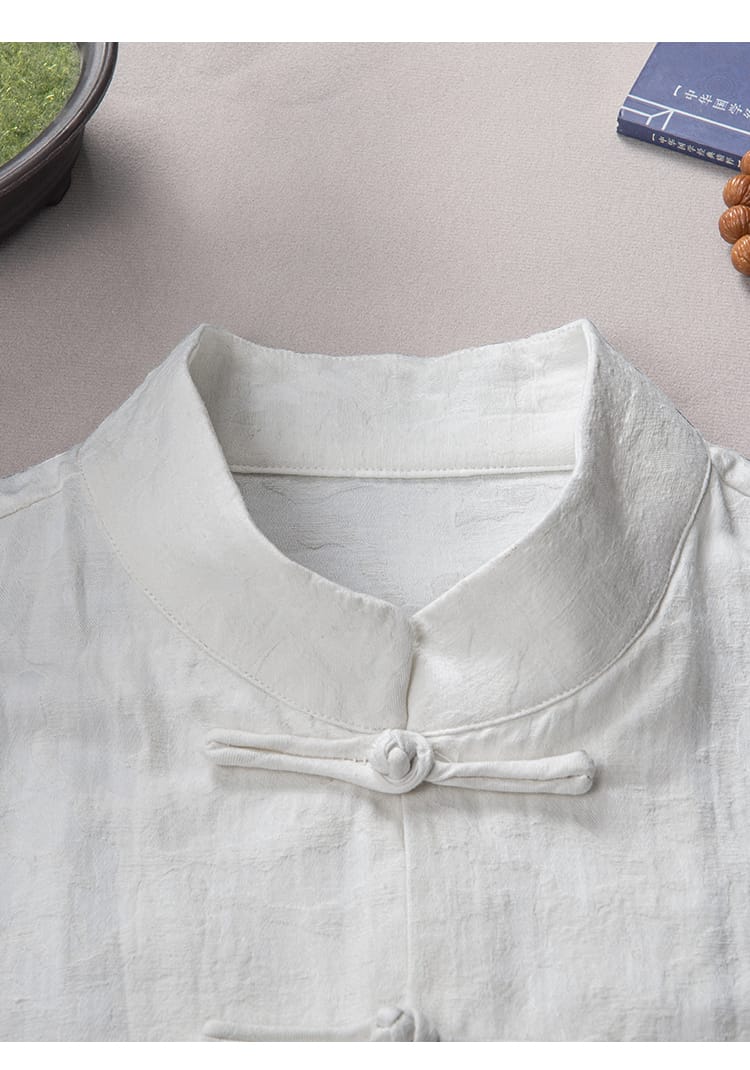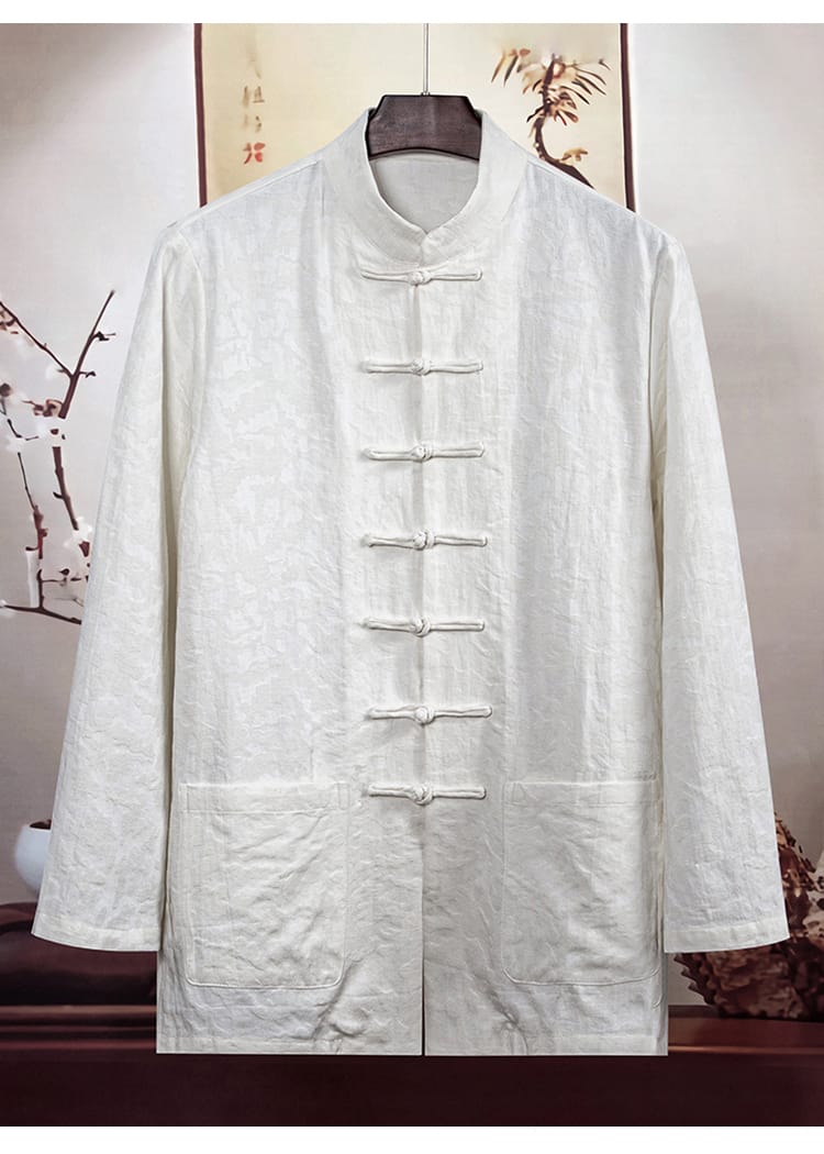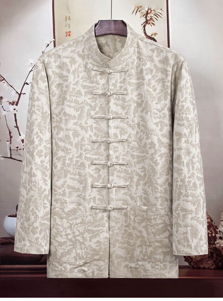 幾何学ジャガード模様の長袖チャイナシャツです。