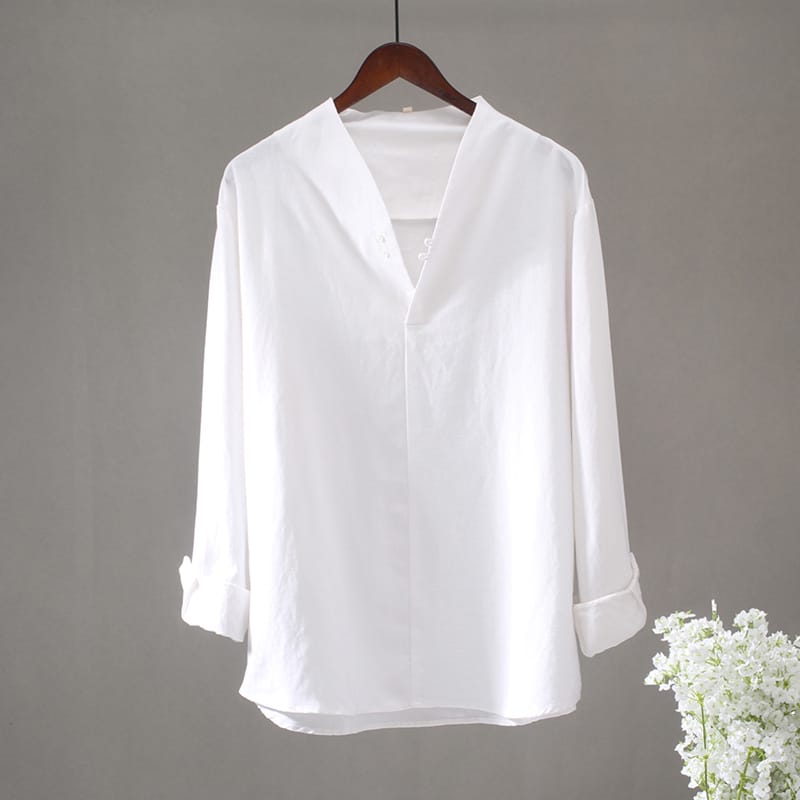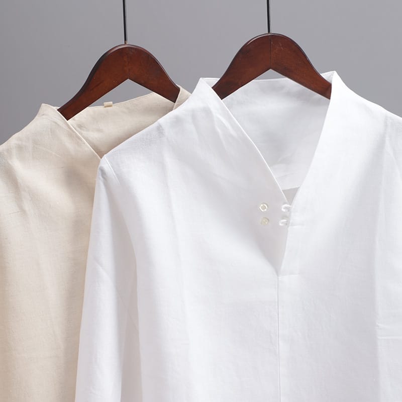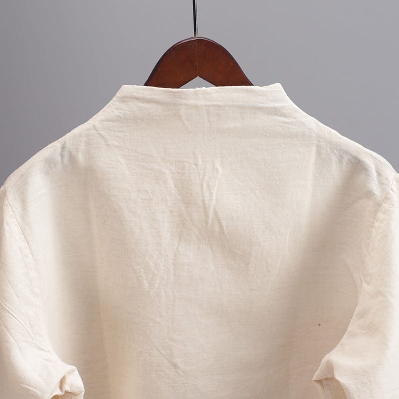 薄手綿麻素材を使ったプルオーバースタイルのチャイナシャツです。