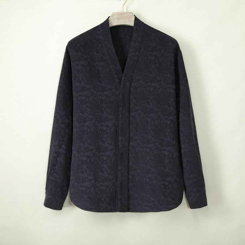 ※比翼前立てに隠れた部分は木ボタンで留めます。