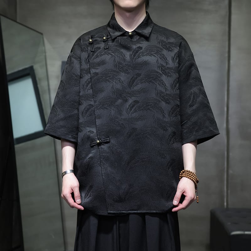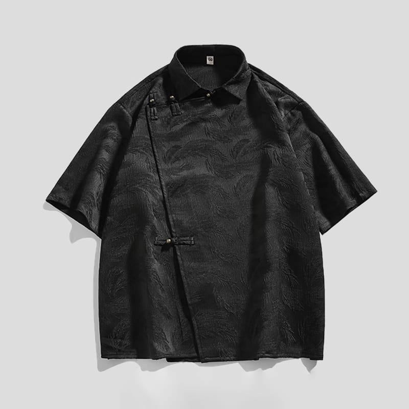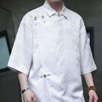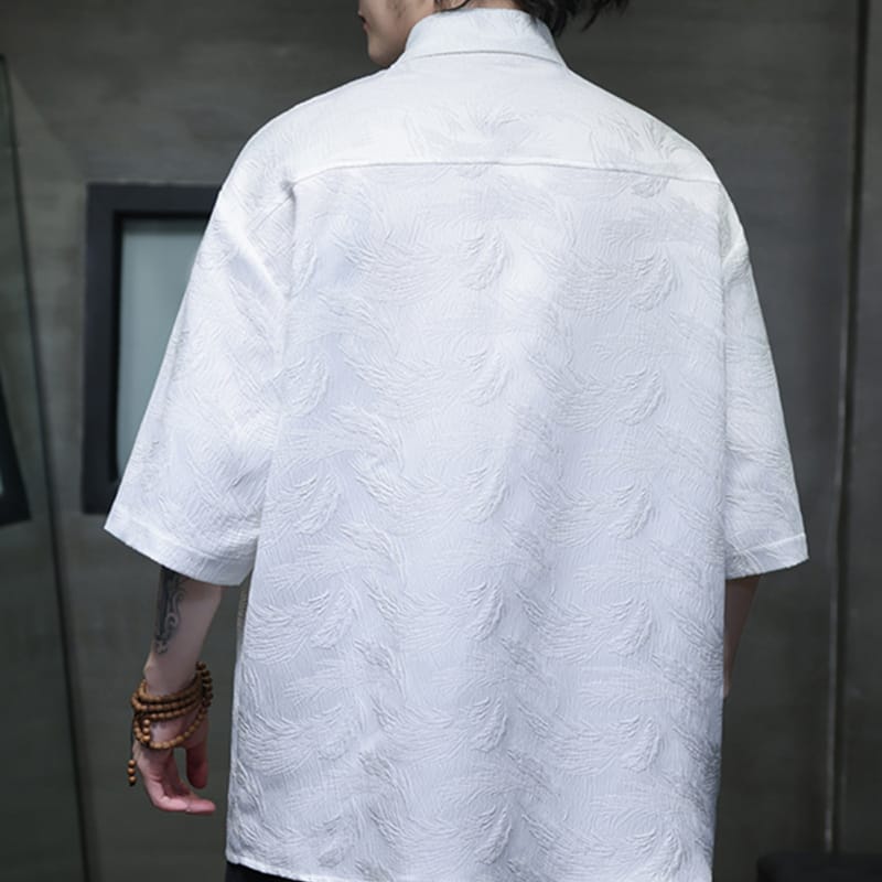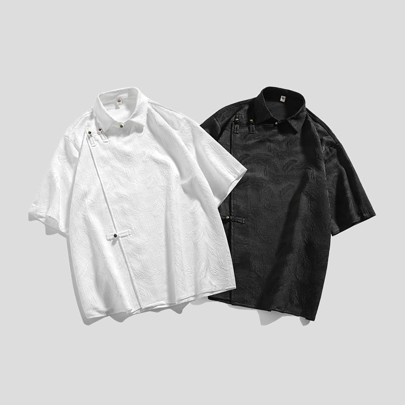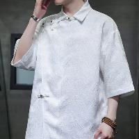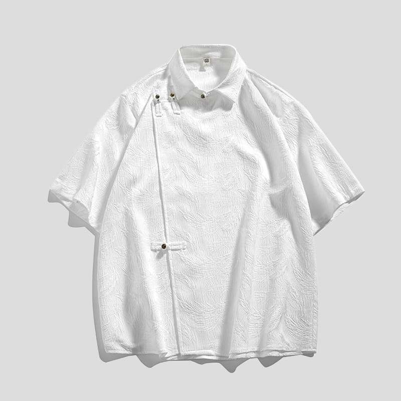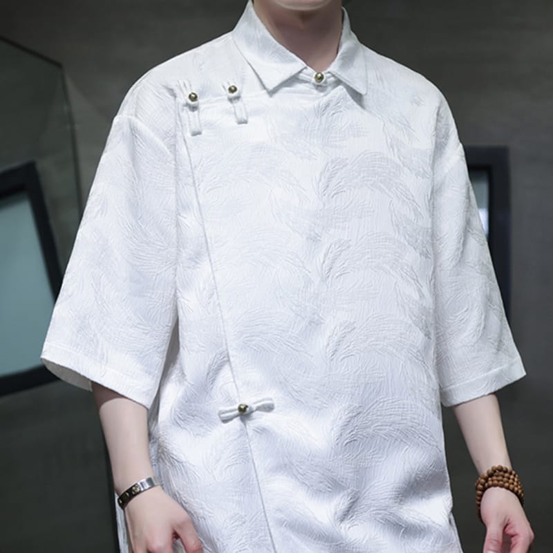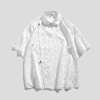 爽やかなアイスシルクのチャイナシャツです。テクスチャー加工による凹凸感のある素材は涼しく軽い着用感を作ります。
