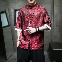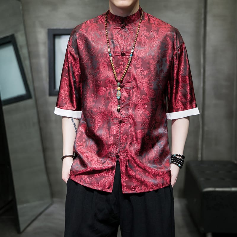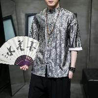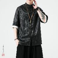 薄手で涼しいアイスシルク素材を使用した5分袖チャイナシャツです。龍(ドラゴン)柄がジャガード織りで表現されています。