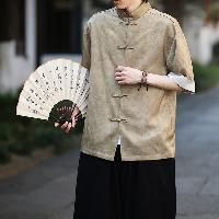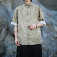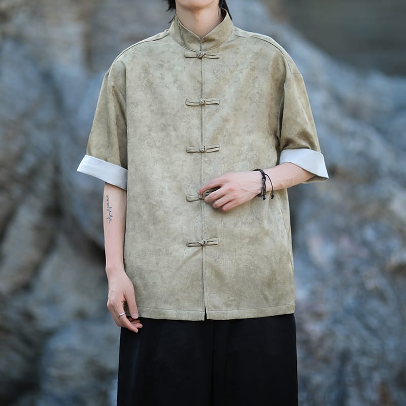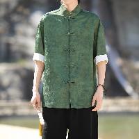 高級感のあるアイスシルク素材を使用した5分袖チャイナシャツです。