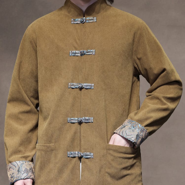 男性用のチャイナ風コーデュロイジャケット