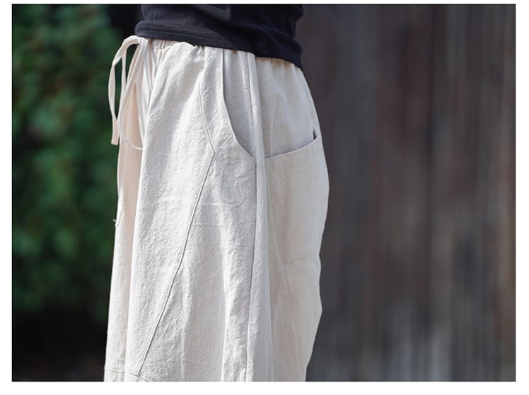 • チャイナ風のワイドレッグダボパンツです。春夏に向いた薄手の綿麻素材を使用。