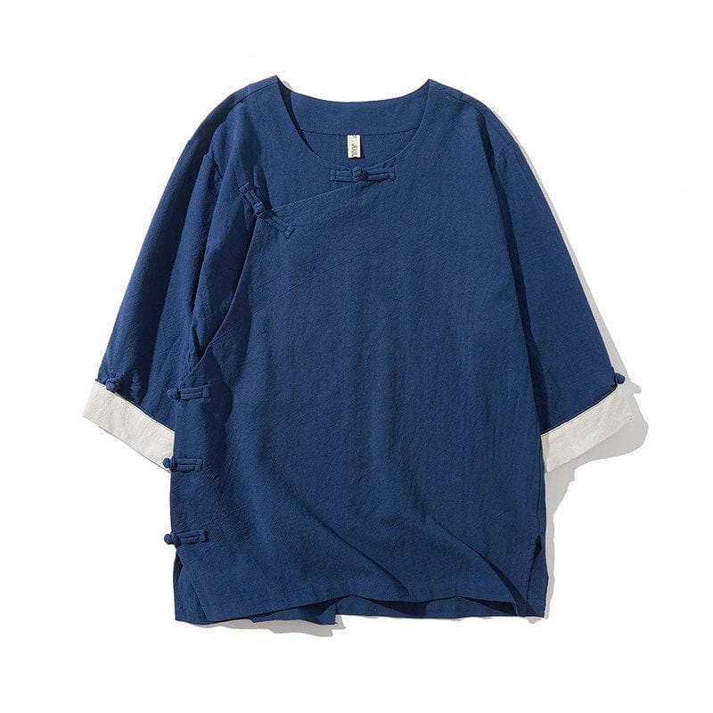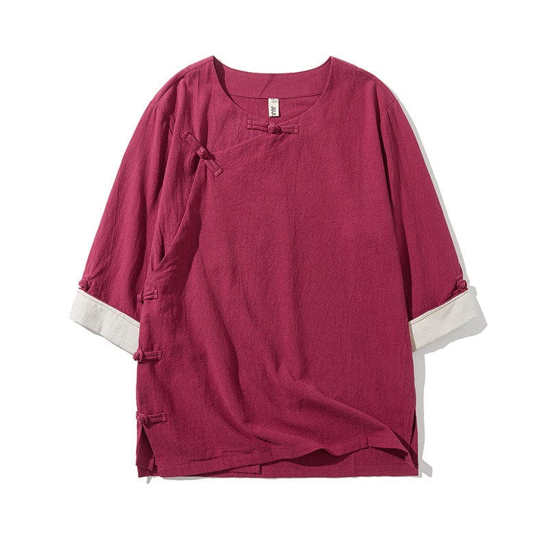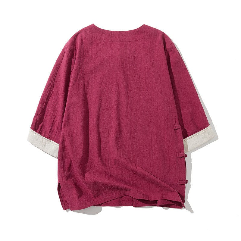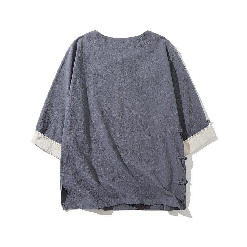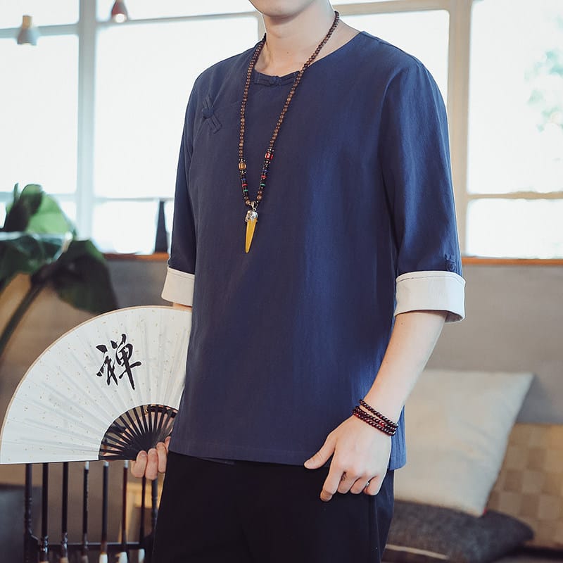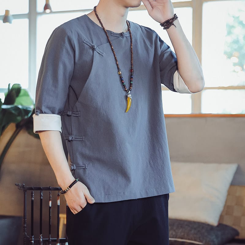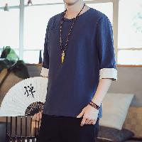 薄手綿麻素材の中国風メンズ半袖Tシャツです。