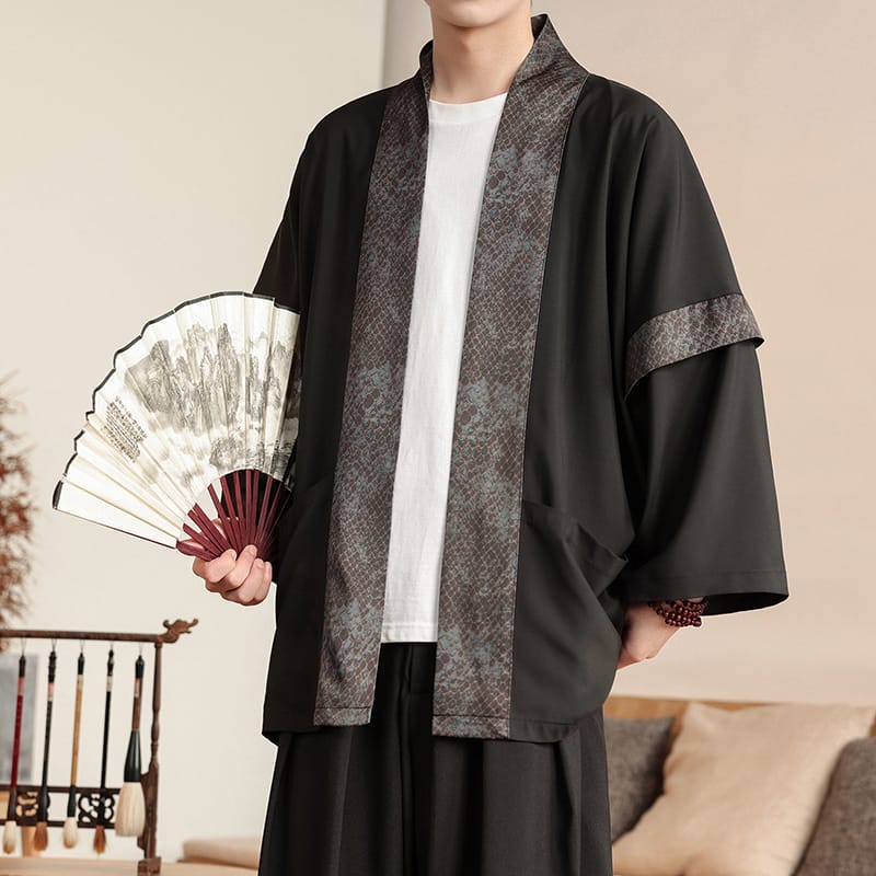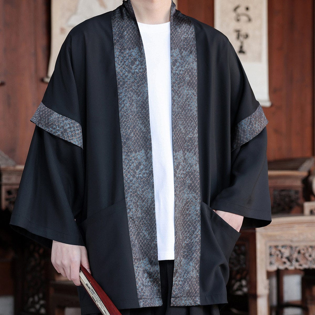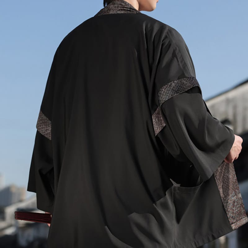 蟒蛇(うわばみ)紋ジャカード織りを前立て・袖に大胆に配したローブです。