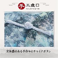 二重立ち襟と白い手作りチャイナボタンが上品さを演出します。