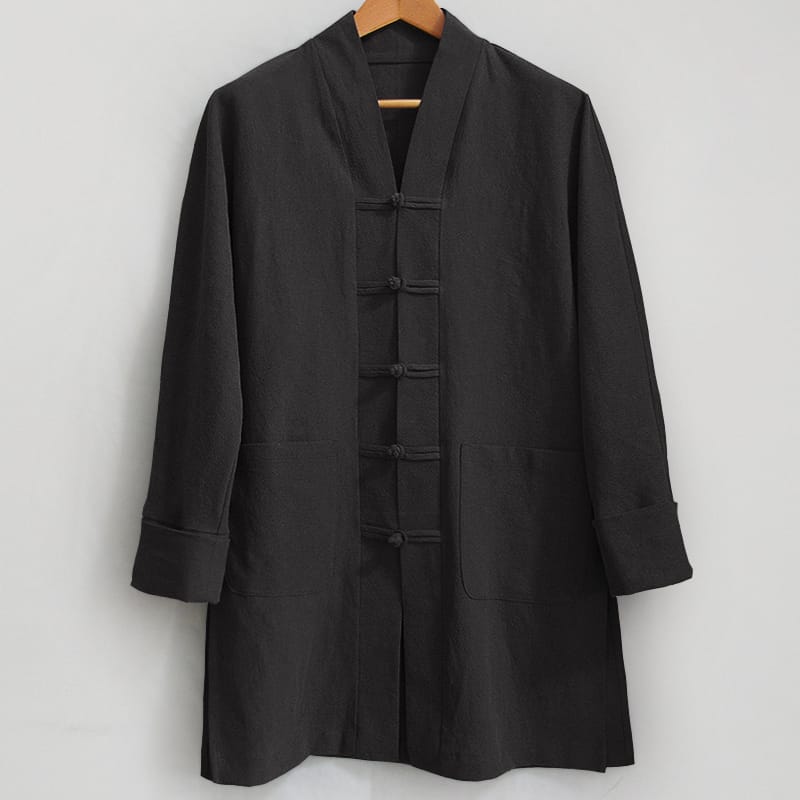 レトロで伝統的な漢服スタイルのミドル丈カーディガンです。