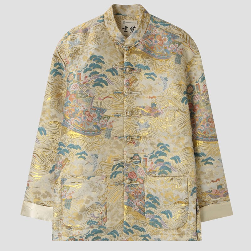 金糸を使った豪華な織りが美しいチャイナジャケットです。