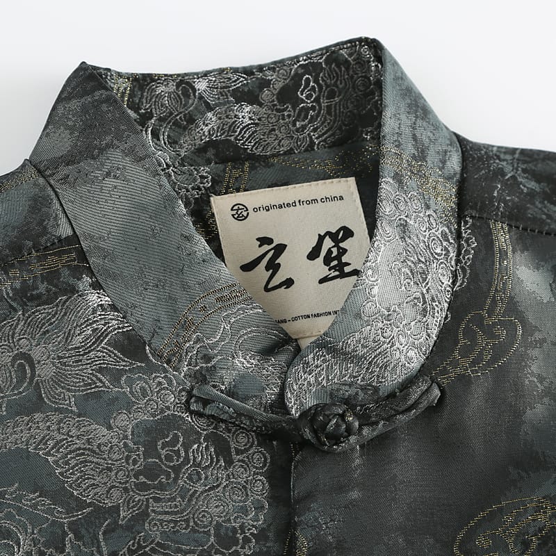 復古調の国潮スタイルに麒麟(きりん)のジャカード織りが施された高級外套です