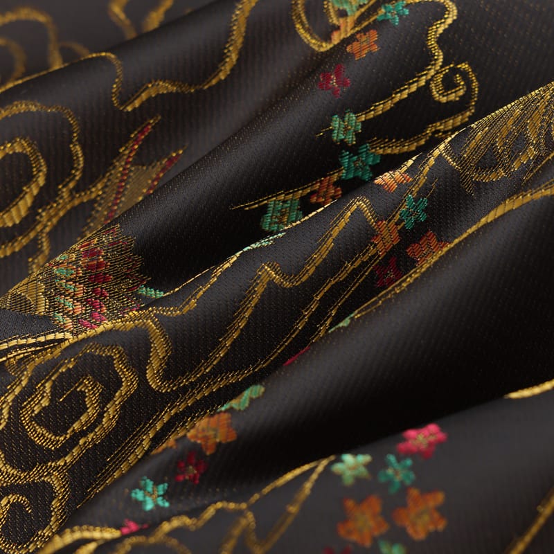 伝統的なチャイナボタンとジャカードで織られて金糸の鳳凰柄が特徴
