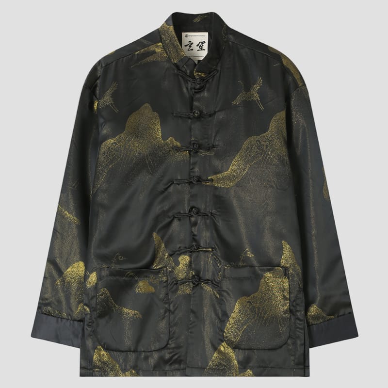 深みのある色の生地に金色の雲染め模様が美しく施されたジャケットです。